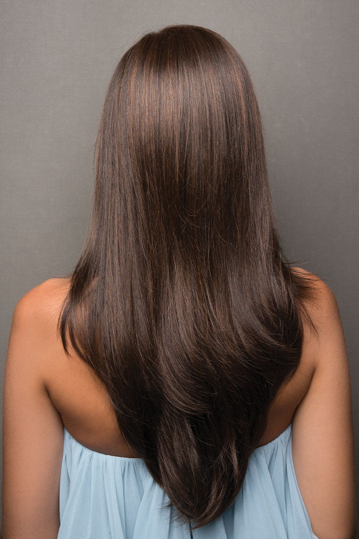 Uno de los modelos más populares de NORIKO, ahora en monofilamento. Peluca Angelica PM de cabello sintético: Melena muy larga que cae hacia la mitad de la espalda.
