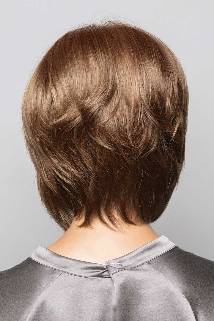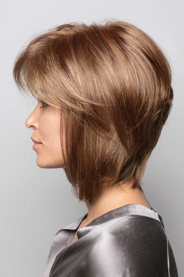 Peluca Cameron de cabello sintético: Media melena con raya al lado, lisa y con capas que aportan movimiento.