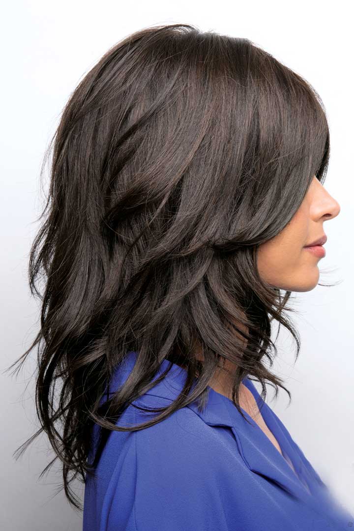 Peluca Hayden de cabello sintético: Media melena versátil, a capas que crean un movimiento natural.