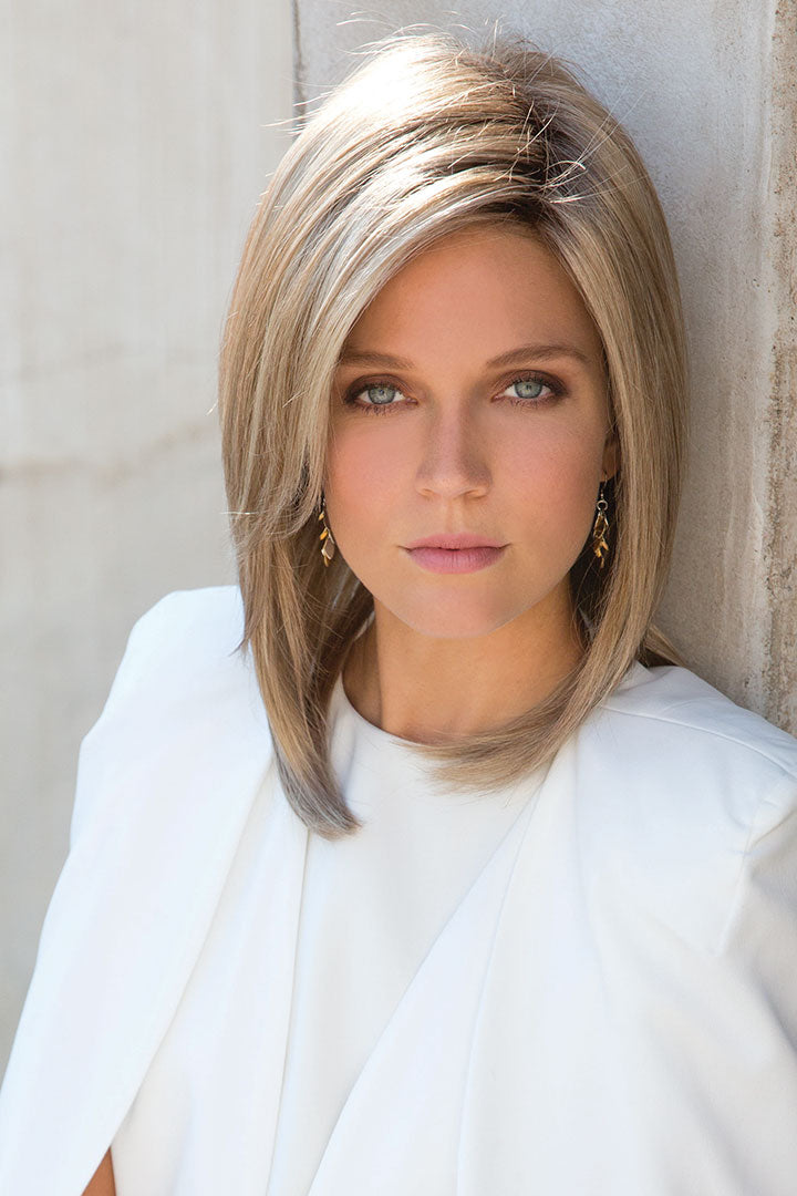 Peluca Jackson de cabello sintético: Estilo elegante, liso, hasta los hombros, con raya y flequillo lateral.