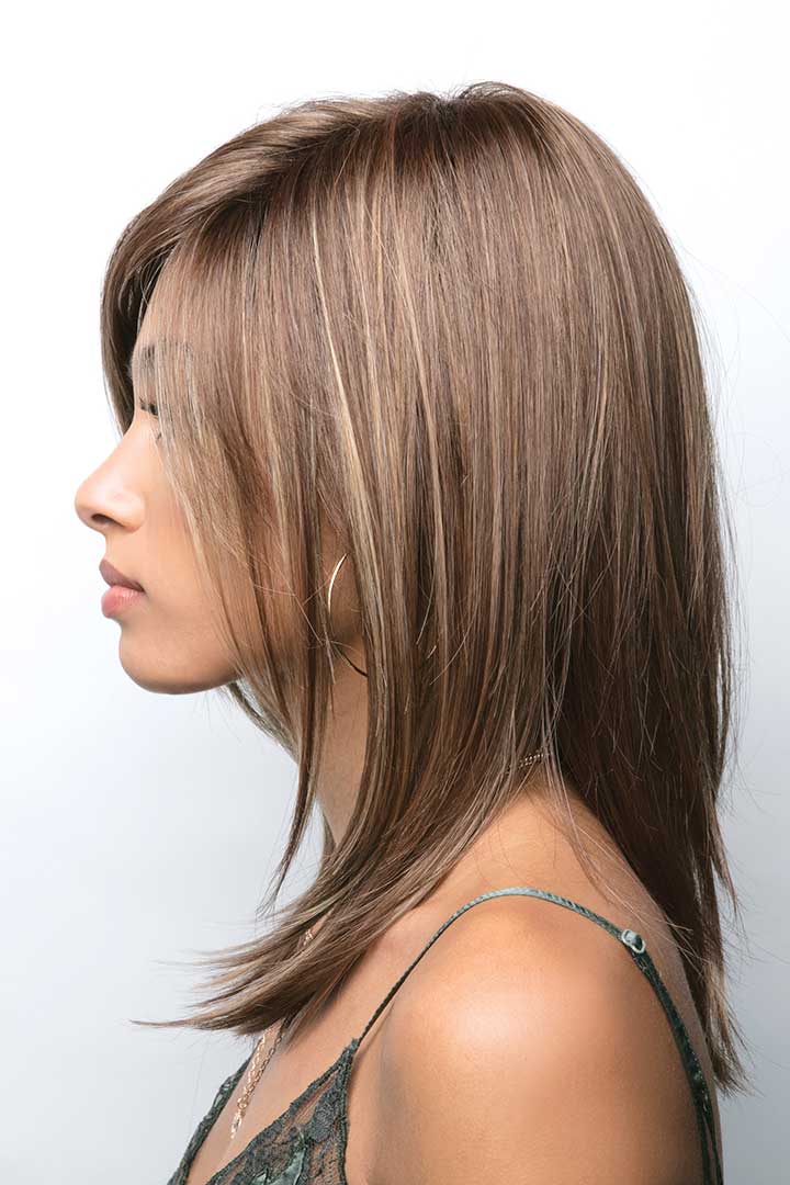Peluca Laine de cabello sintético: Melena lisa, con la raya en un lado y la parte delantera capeada.