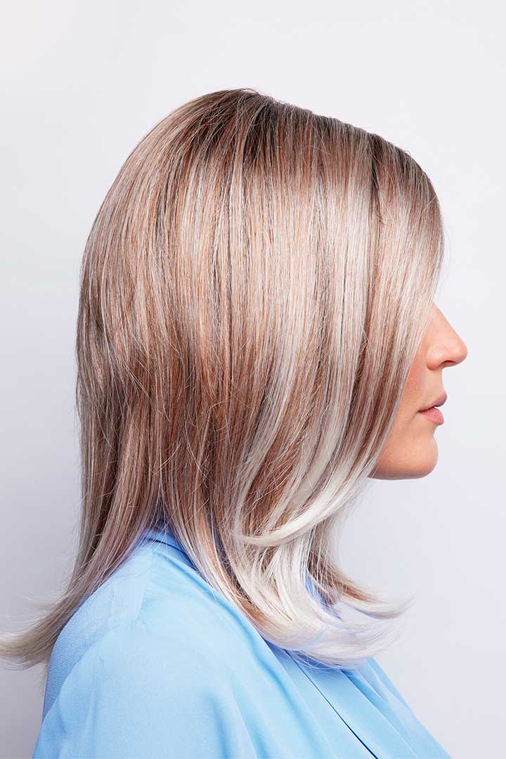 Peluca Harlee de cabello sintético: Con capas largas y escaladas que proporcionan una textura suave y refinada.