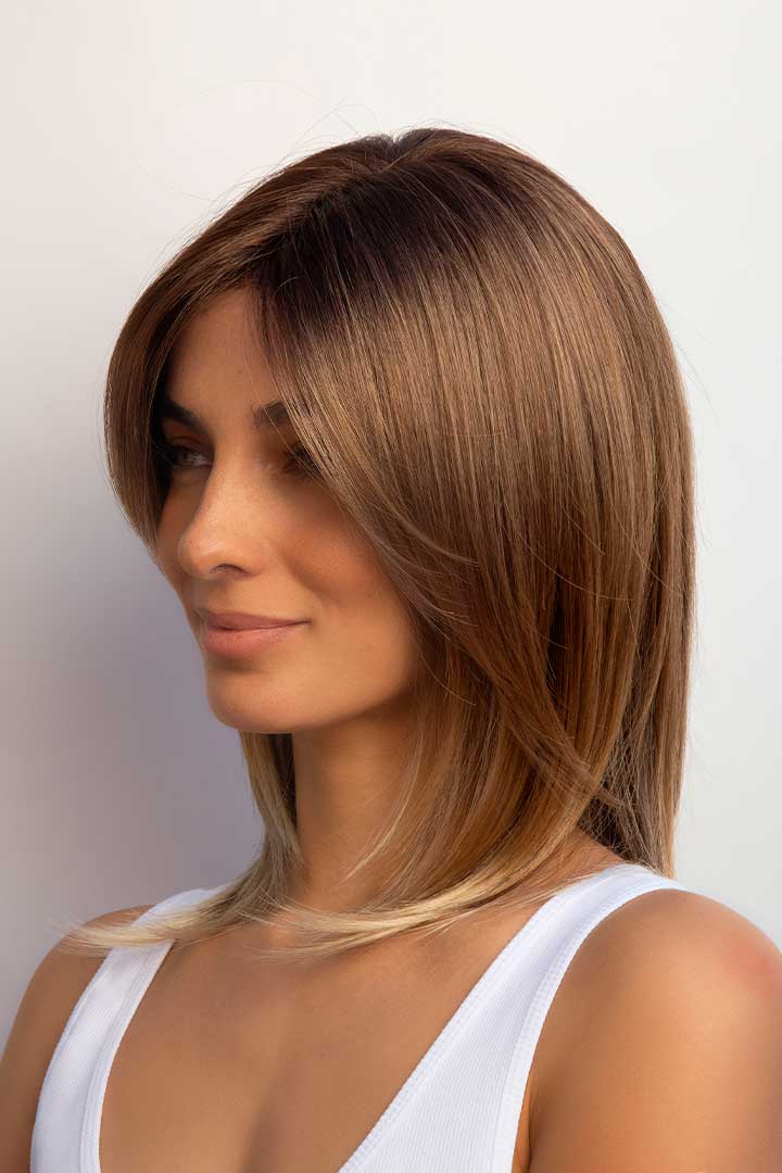 Peluca Reed de cabello sintético: Media melena lisa y a capas, que crean un movimiento suave y natural.