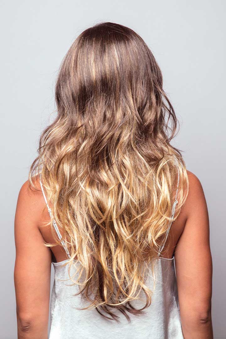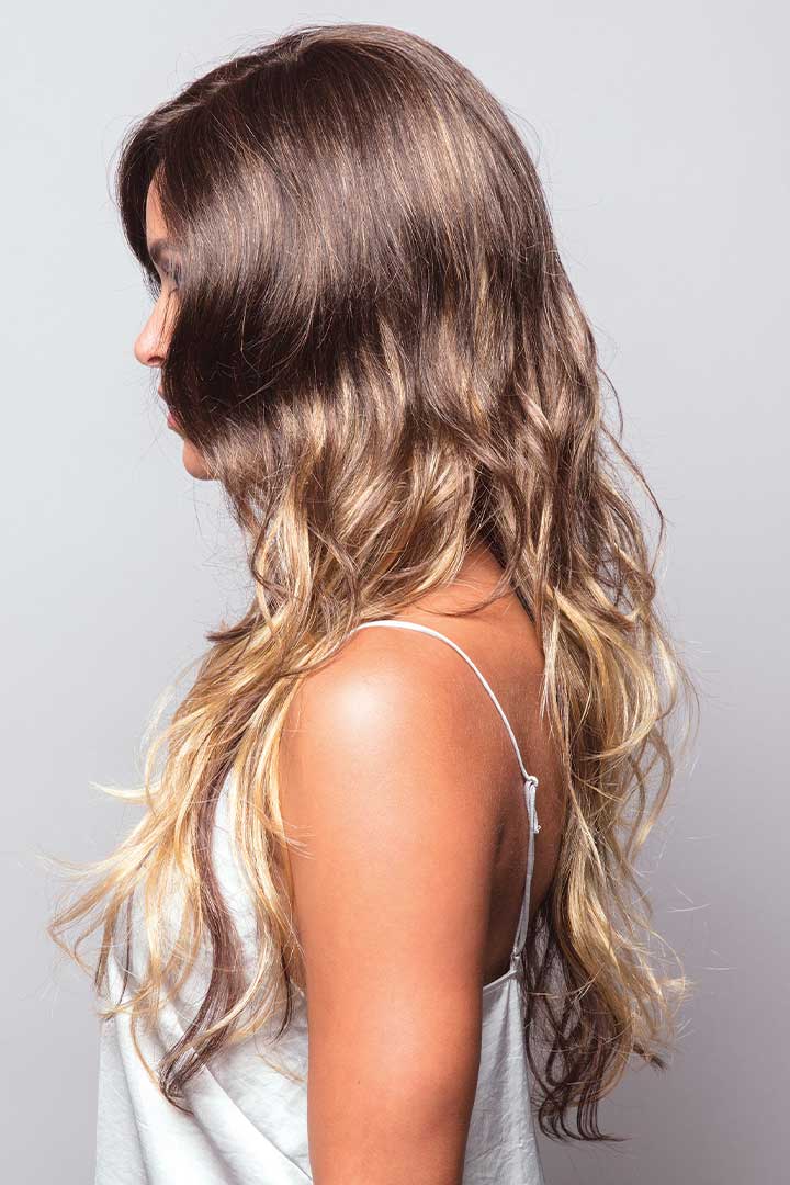 Peluca Rylee de cabello sintético: Melena muy larga, con la raya a un lado, escalada y con ondas suaves.
