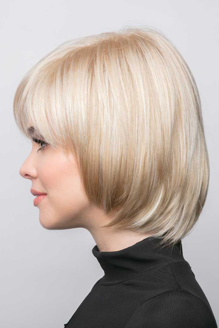 Peluca Shannon de cabello sintético: Bob liso y redondeado, peinado hacia adelante.