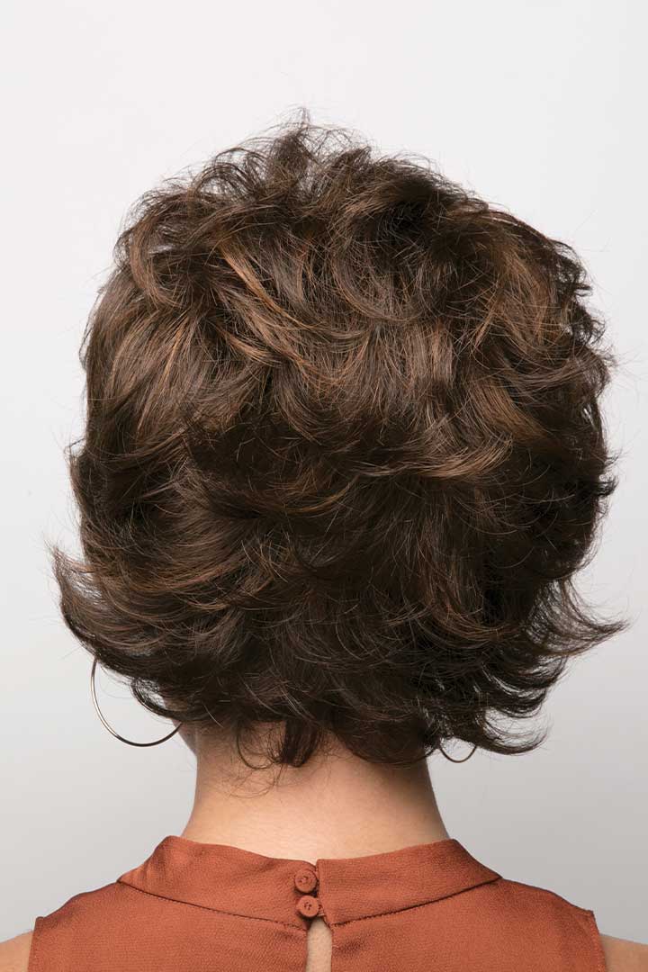Peluca Sierra de cabello sintético: Estilo corto, con flequillo y volumen en la parte de atrás.